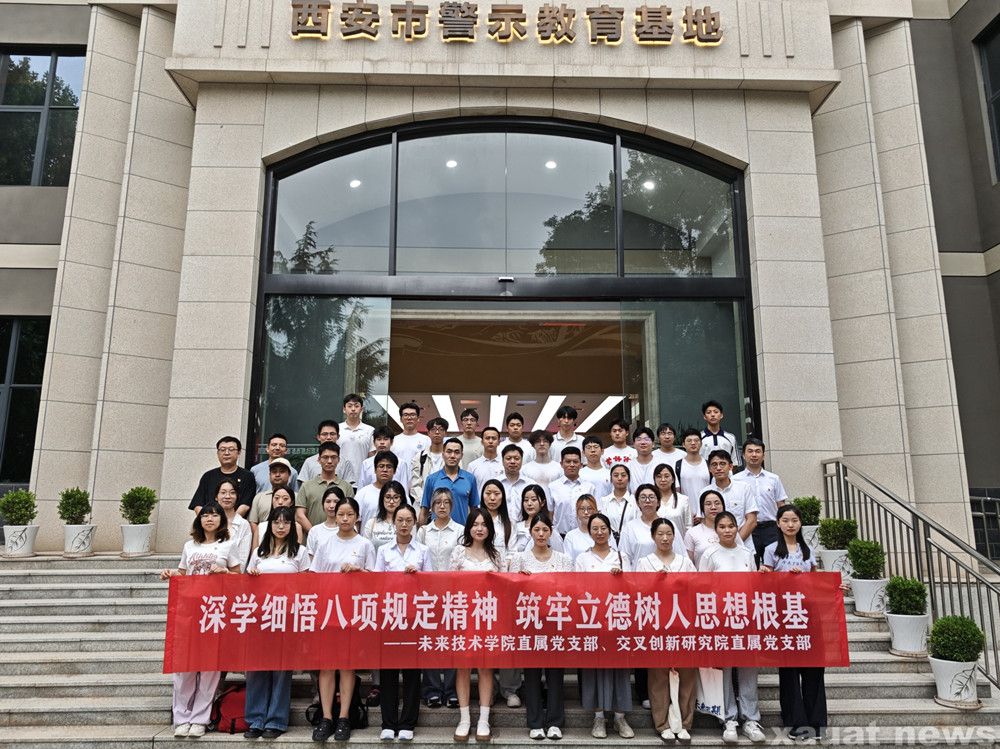 为扎实开展深入贯彻中央八项规定精神学习教育,认真学习领会习近平总书记关于加强党的作风建设的重要论述,6月20日下午,交叉创新研究院直属党支部联合未来技术学院直属党支部师生党员赴西安市警示教育基地开展“深学细悟中央八项规定精神,筑牢立德树人思想根基”主题党日活动。