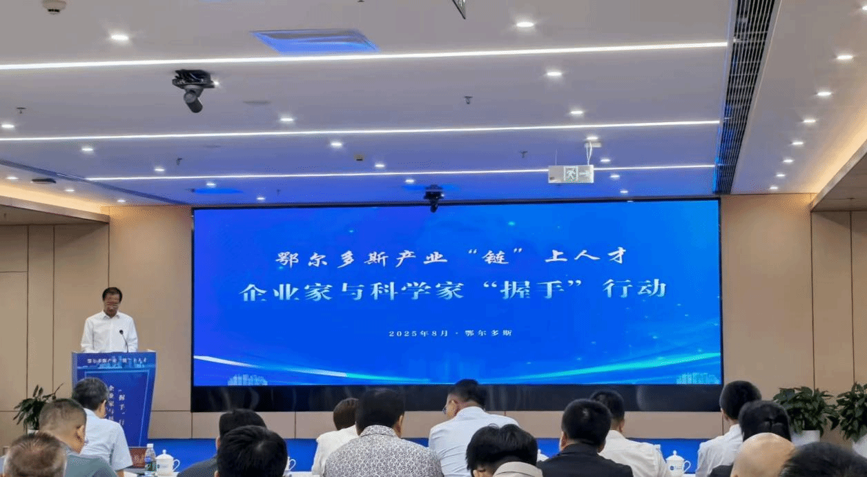 为深入贯彻落实绿色低碳发展战略,以高校科研之力赋能鄂尔多斯市产业转型升级,8月21日,我院固废全量资源化工程应用研究院潘爱芳院长带领科研团队赴鄂尔多斯市,参加“鄂尔多斯产业‘链’上人才:企业家与科学家‘握手’行动”。鄂尔多斯市委常委、组织部部长高闻何出席活动并发表致辞(图1),市人民政府副市长张秀玲,全国政协常委、中国科学院院士、清华大学教授兼学术委员会副主任、鄂尔多斯新能源研究院学术委员会主任欧阳明高等参加活动。