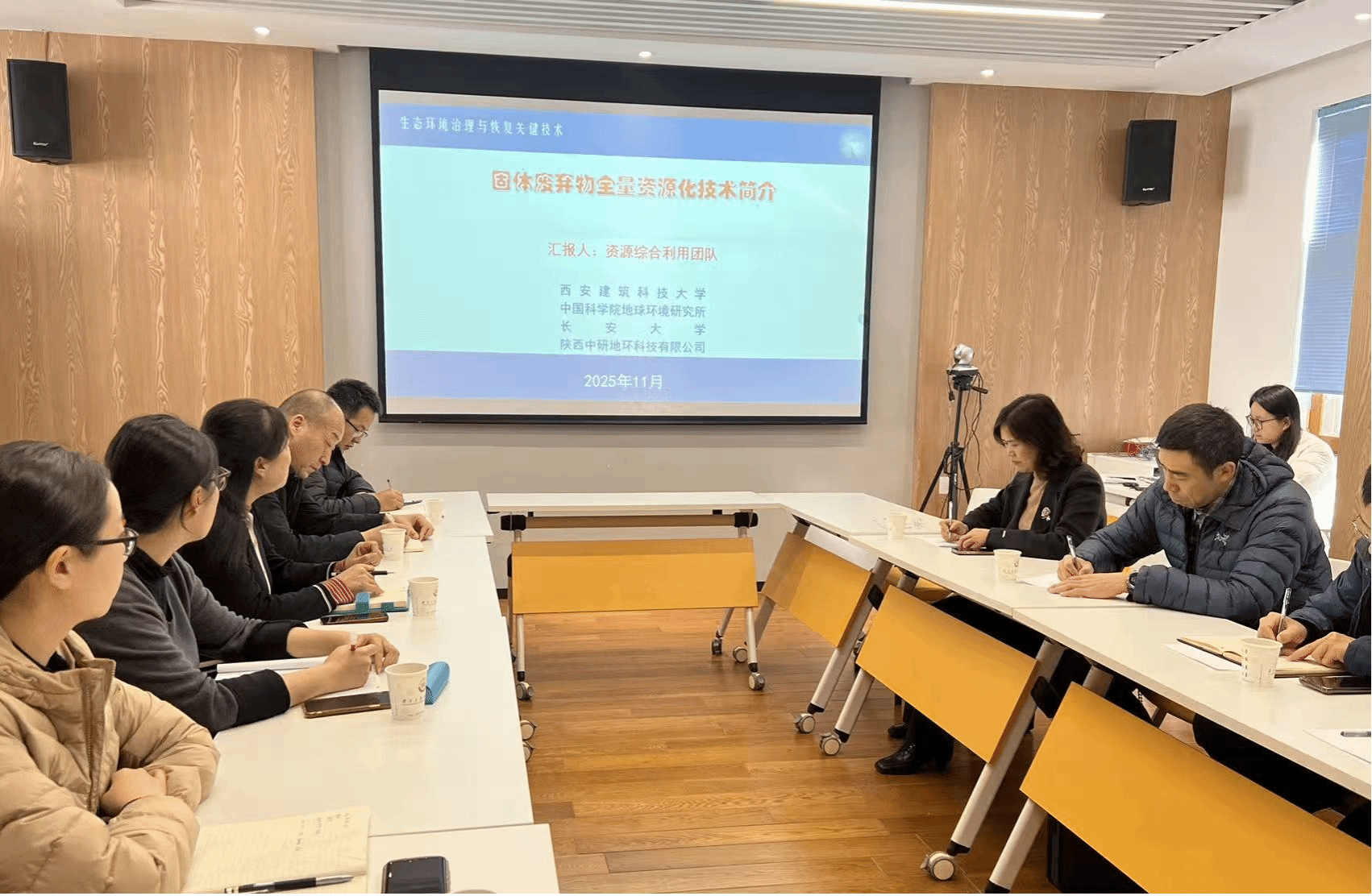 2025年11月20日下午,陕西环保集团总审计师皮红芳,秦枫矿业总经理李龙、集团科技创新部负责人李永超、安全环保部谢雨玲一行来访我院固废全量资源化应用研究院,围绕石煤钒矿、煤基固废等资源化利用技术座谈交流。固废全量资源化应用研究院院长潘爱芳教授及团队成员出席会议。