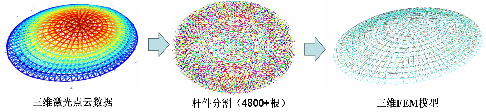 1.成果名称:基于激光点云的大跨网格结构杆件变形识别及FEM模型逆向生成技术