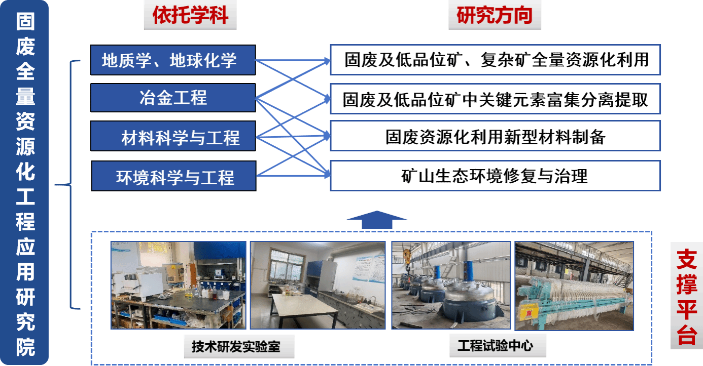 研究院定位:聚焦国家循环经济与“双碳”战略,依托我校、中科院地所、长安大学学科力量,着力解决固废减量化、资源化、无害化关键工程技术难题,为国家生态环境治理与战略性矿产资源保障提供关键技术。